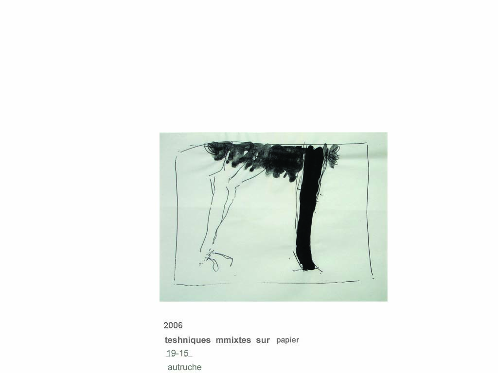 Ostrich, 2006, mixed media on paper
