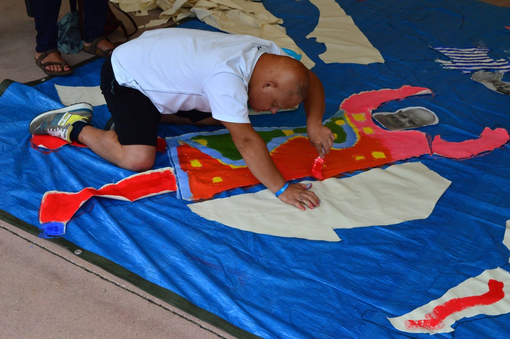 –– Atelier œuvre collective à Cecina (Italie, Toscane). En partenariat avec l’ONG italienne Arci et La caravane culturelle syrienne (35 participants adultes).