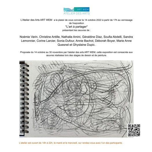 L’Atelier ART WEM a le plaisir de vous convier le 14 octobre 2022 à partir de 17h au vernissage de l’exposition